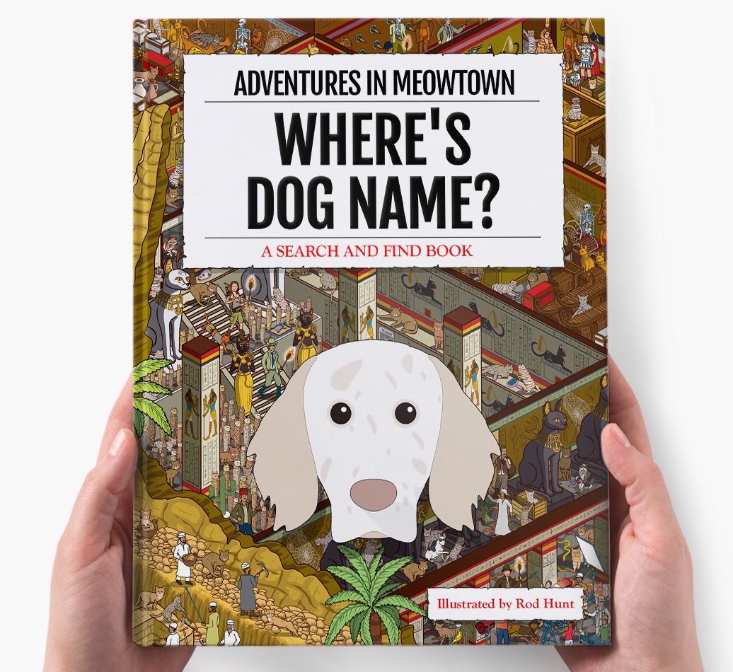 Get ready to unleash your inner detective with our popular Search & Find book, ‘Where’s (insert dog name)?’ It’s the personalized dog book everyone’s yapping about! With twelve beautifully illustrated locations to explore, we challenge you to find your adventurous {breedShortName} on each action-packed page. Can you spot all the canine cameos and funny parodies too?