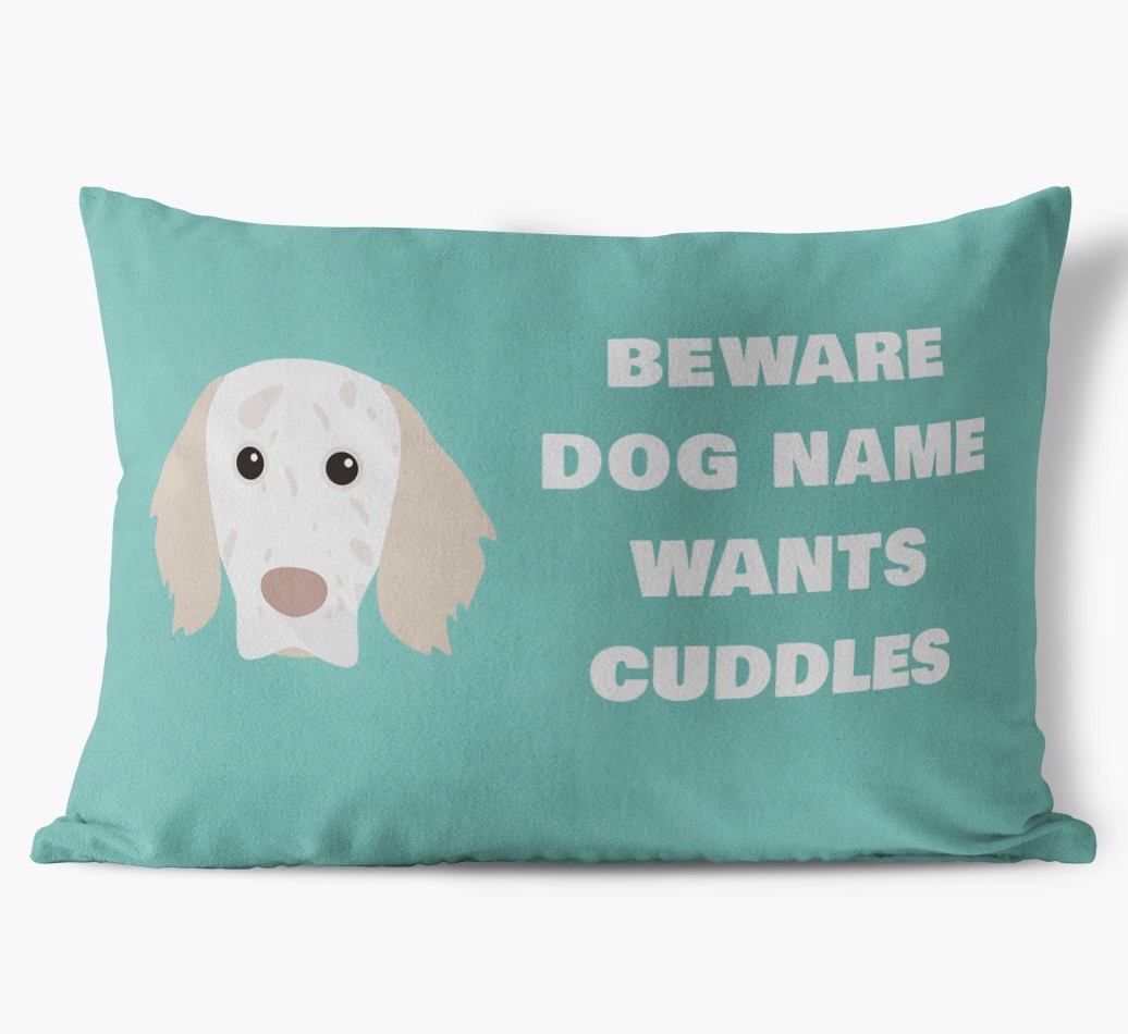Beware of Cuddles: Personalized English Setter Soft Touch Pillow
