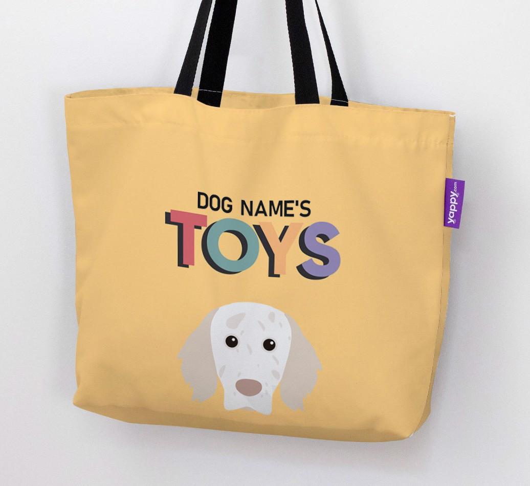 Don’t worry, we’ve got you covered with this pawsonalized canvas bag made for your English Setter’s toy collection!