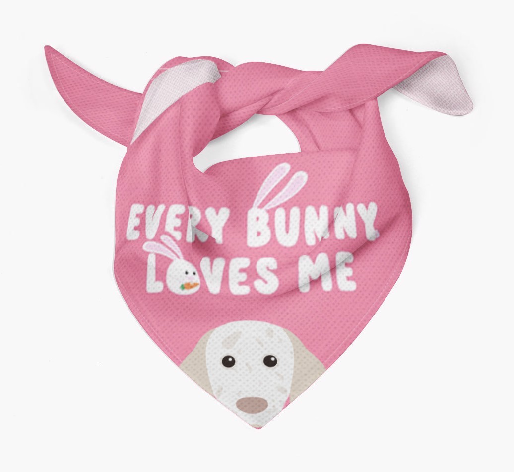 Tailored with the fabulous saying: 'Every Bunny Loves Me', this bandana is the perfect addition to your English Setter's wardrobe! Available in four egg-ceptional colors and personalized with your English Setter's icon, this is the perfect pawchase for Easter!