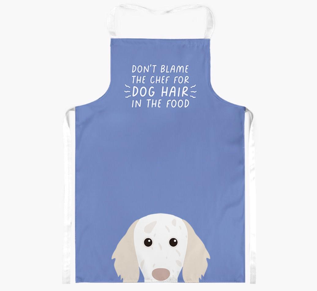 If you’re getting tired of people coming round and moaning about English Setter hair in the food, you’re going to need this apron to remind them that you cannot be blamed, it’s English Setter’s fault!