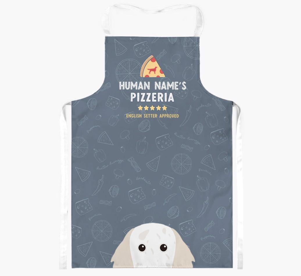 Featuring your furry friend's icon and lick of approval, plus your chosen human name, this apron is pawfect for anyone who considers themselves a pizza maestro in the kitchen. Available in a choice of 5 rustic colors, it'll make any Setter lover happy.