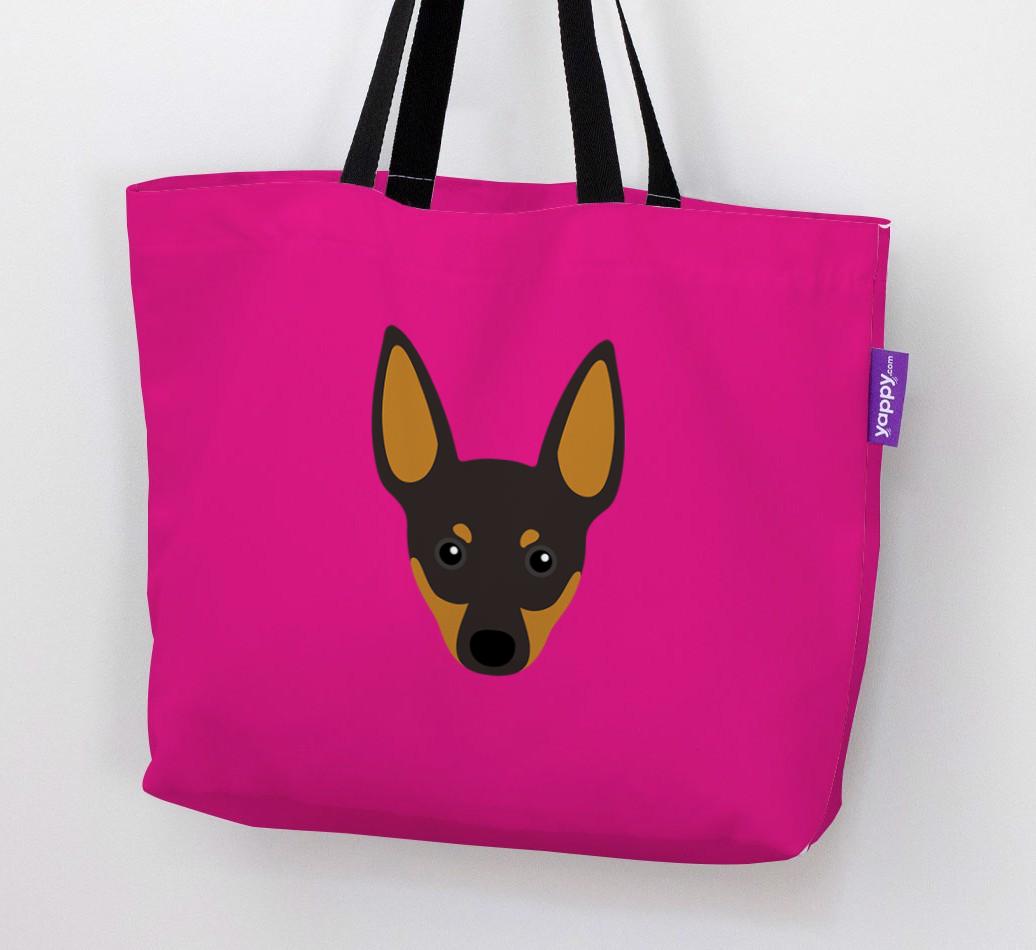 This Canvas Bag features an exclusive English Toy Terrier icon printed on a bright, bold background.