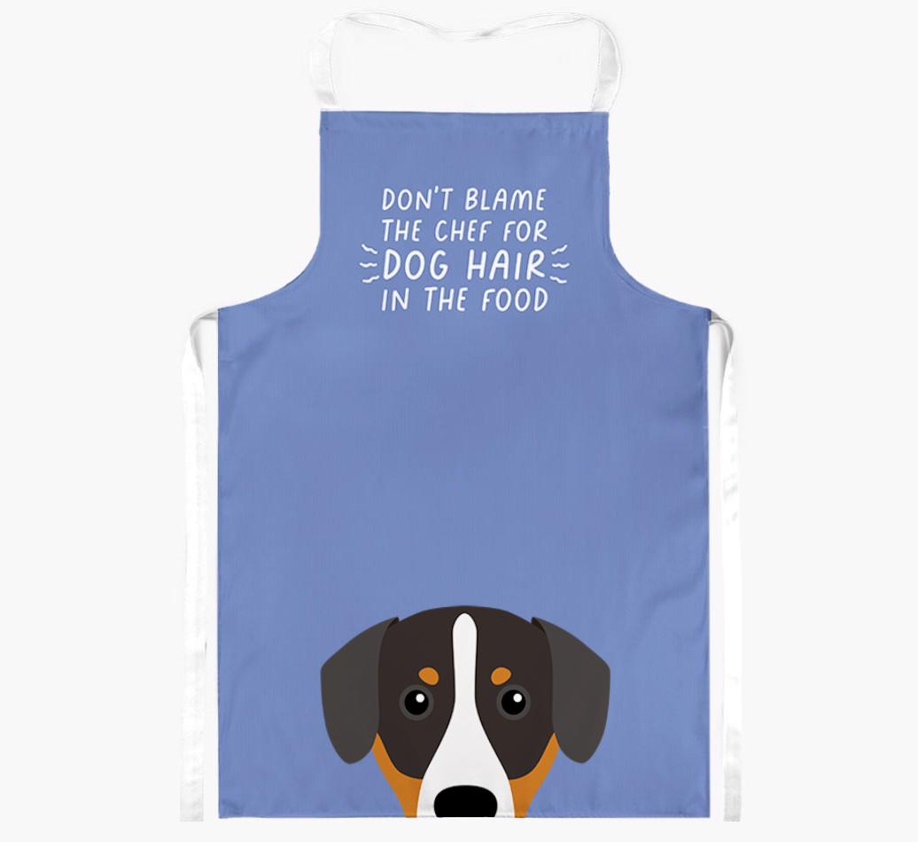 This funny apron will warn friends and family not to blame the chef for dog hairs in their food, they have Entlebucher Mountain Dog to thank for that!