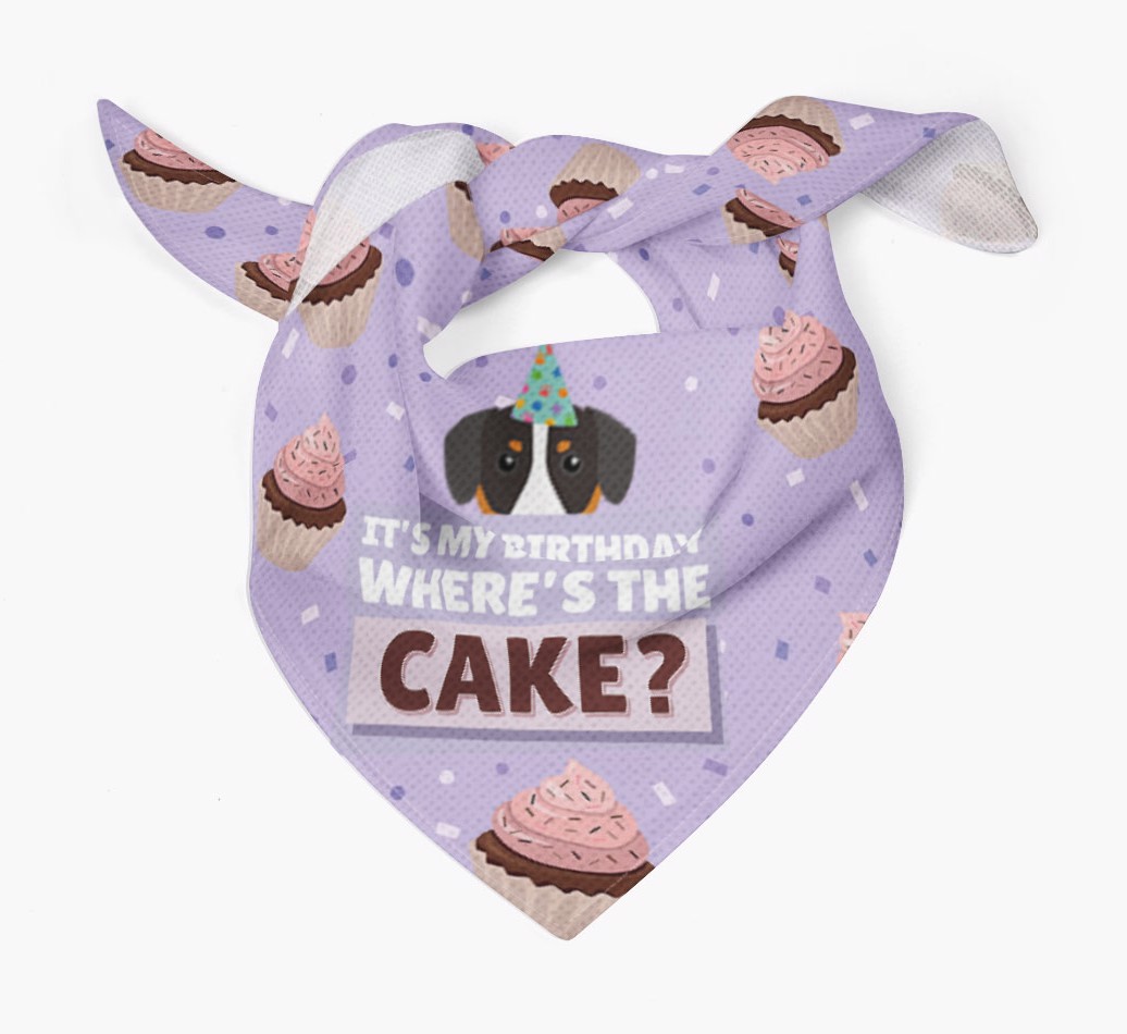 'Where's the Cake?' - Personalized Entlebucher Mountain Dog Birthday Bandana