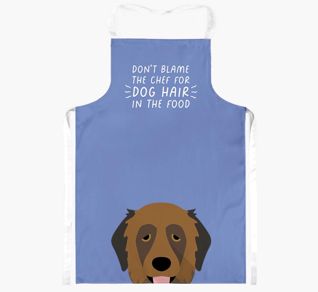 This funny apron will warn friends and family not to blame the chef for dog hairs in their food, they have Estrela Mountain Dog to thank for that!