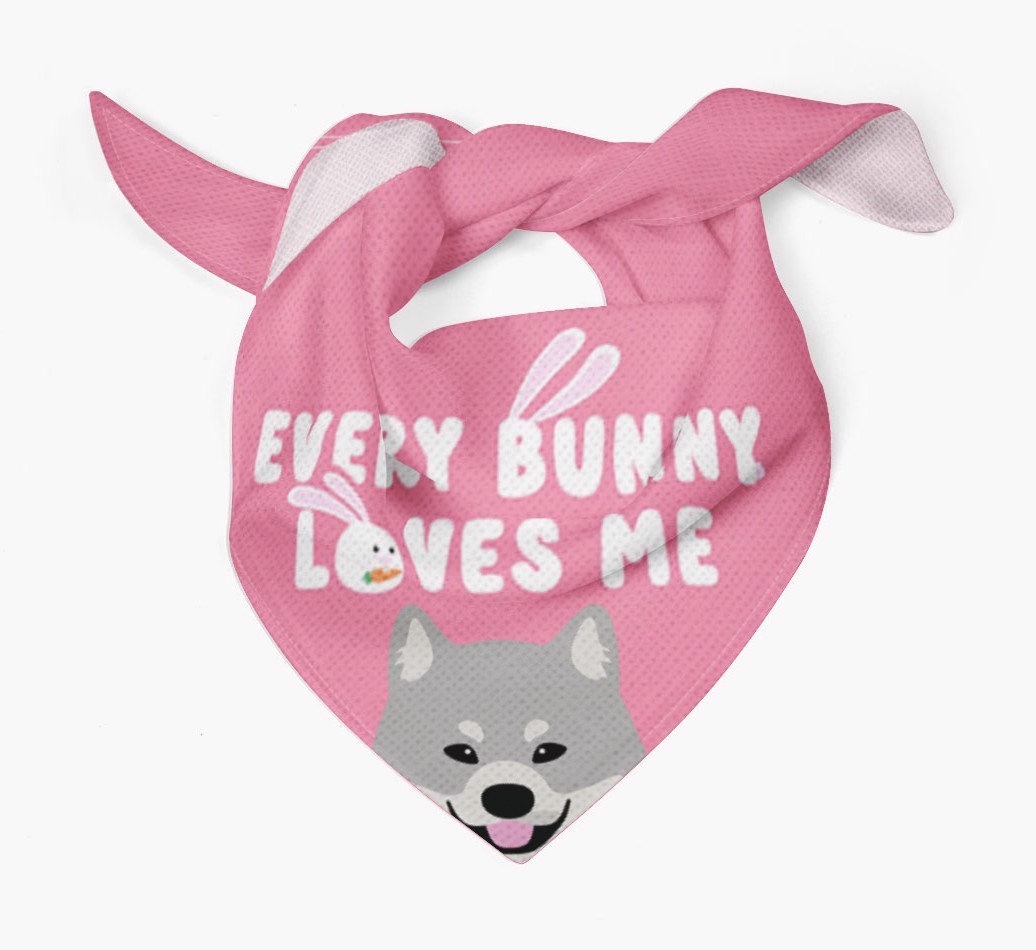 Tailored with the fabulous saying: 'Every Bunny Loves Me', this bandana is the perfect addition to your Eurasier's wardrobe! Available in four egg-ceptional colors and personalized with your Eurasier's icon, this is the perfect pawchase for Easter!