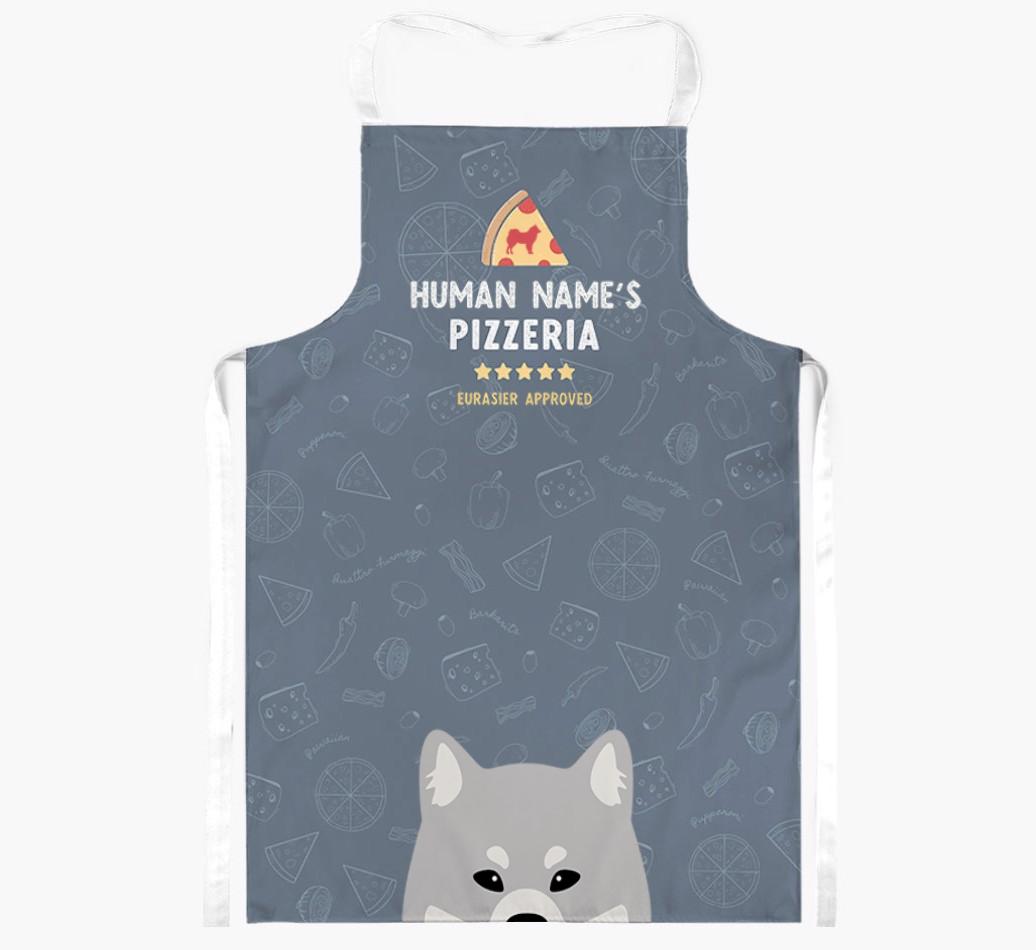 Featuring your furry friend's icon and lick of approval, plus your chosen human name, this apron is pawfect for anyone who considers themselves a pizza maestro in the kitchen. Available in a choice of 5 rustic colors, it'll make any Eurasier lover happy.