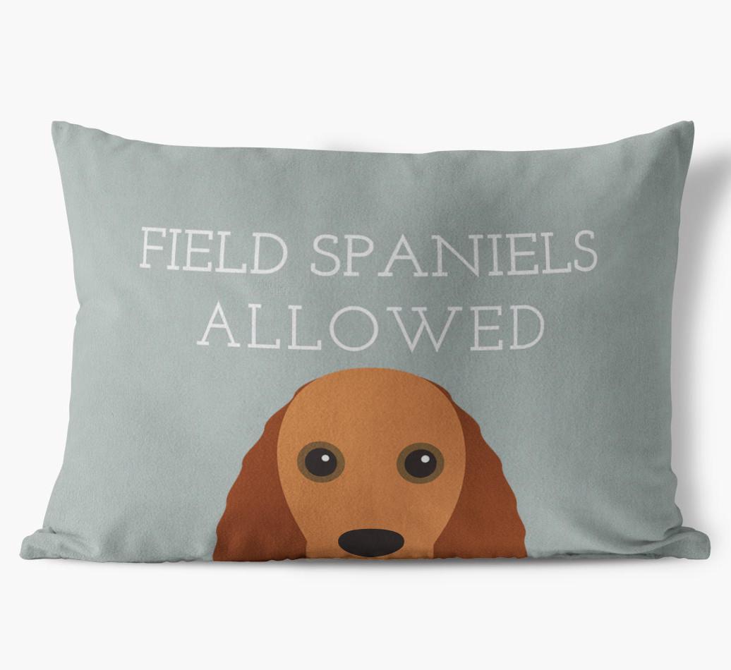 This exclusive, luxurious pillow is printed with the words ‘Field Spaniels Allowed’, which I’m sure Your Field Spaniel would definitely approve of.