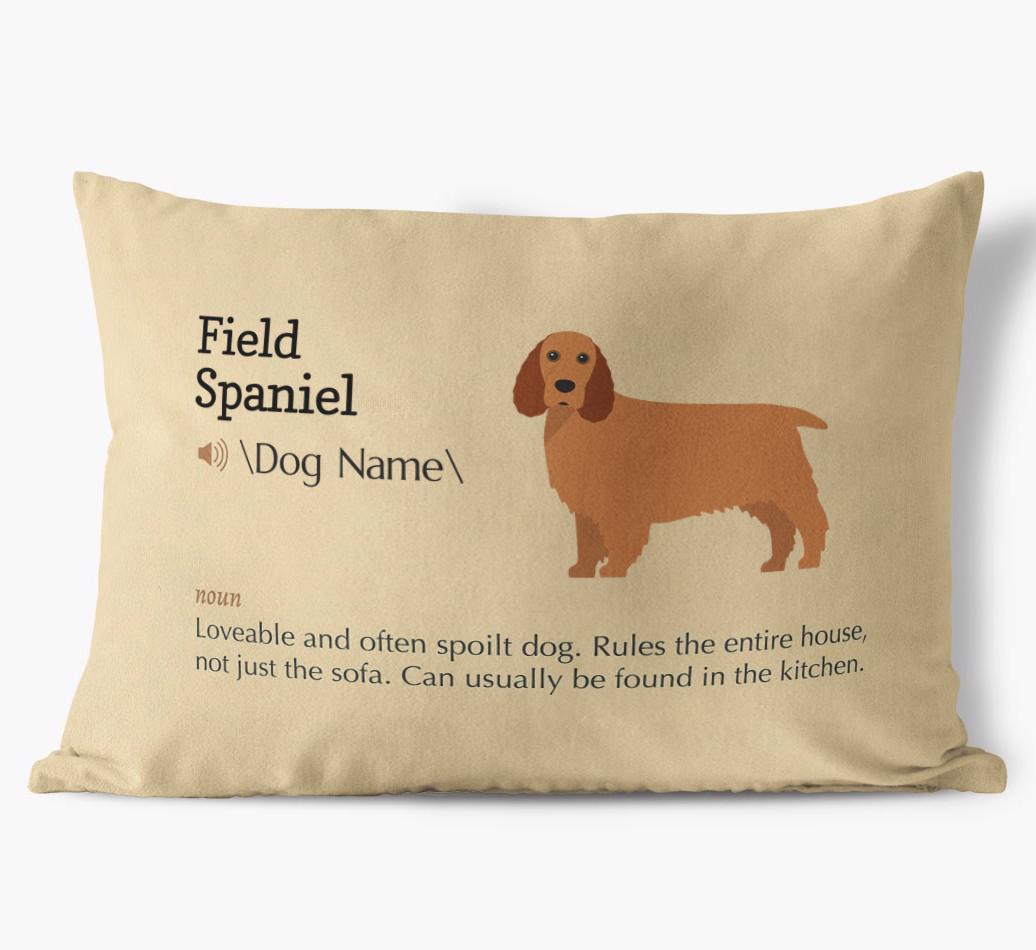 Personalized just for Your Field Spaniel and featuring a unique Field Spaniel definition and silhouette, this pillow truly is like no other.