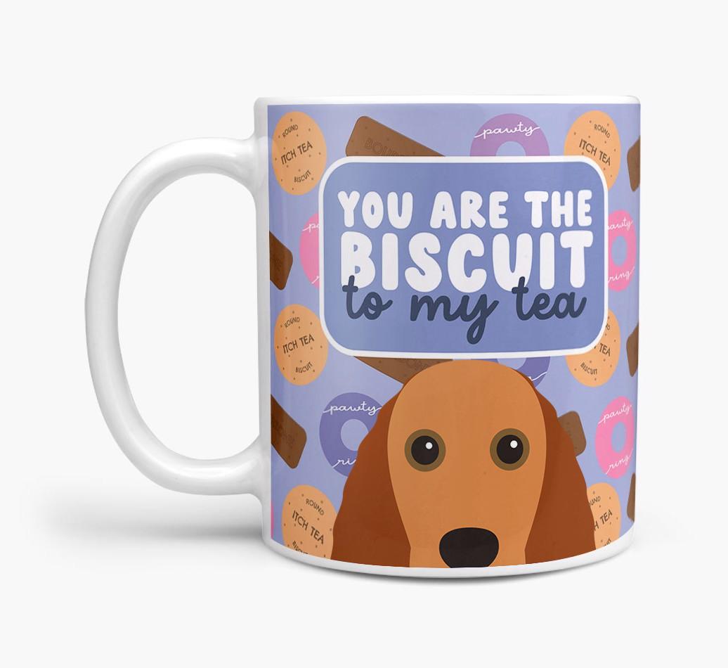 Featuring a cute biscuit motif paired with your Field Spaniel's adorable face, this mug is bound to be a firm favorite in every household.