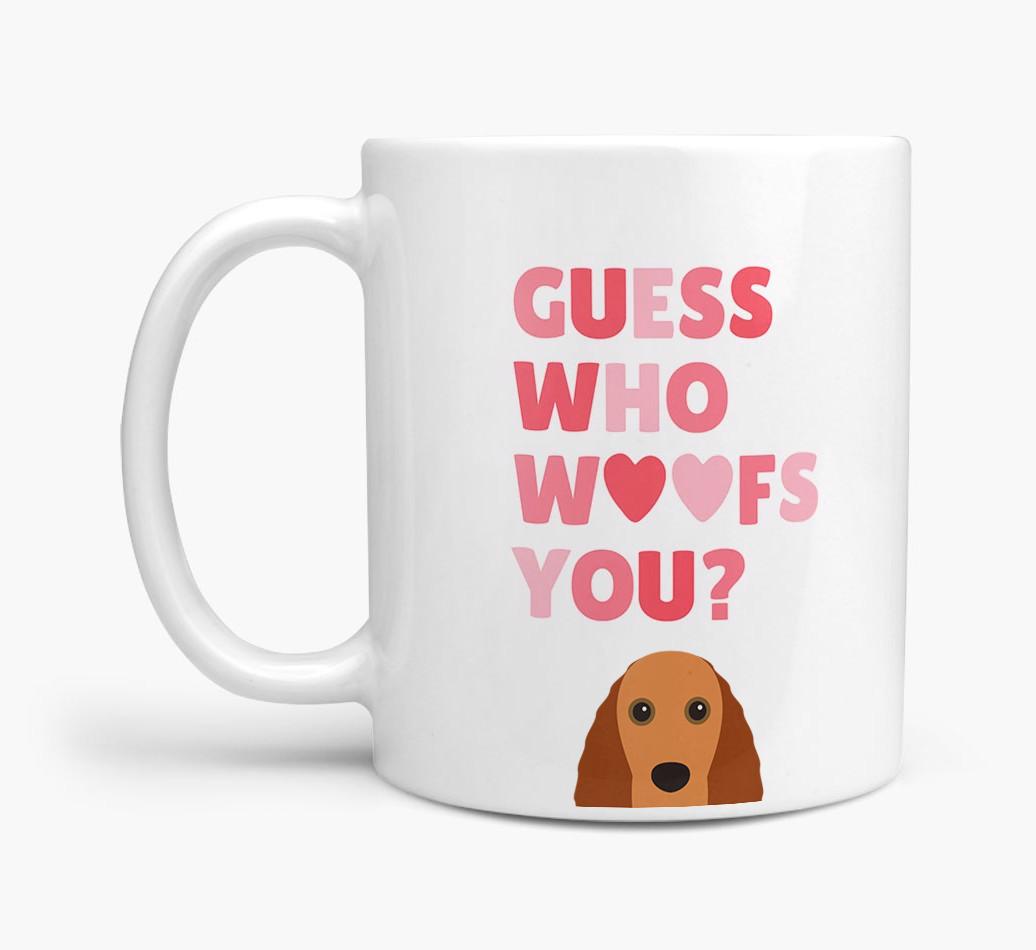Personalized with Field Spaniel's cute face, this adorable mug is perfect for showing off the one who "woofs" you - how sweet!