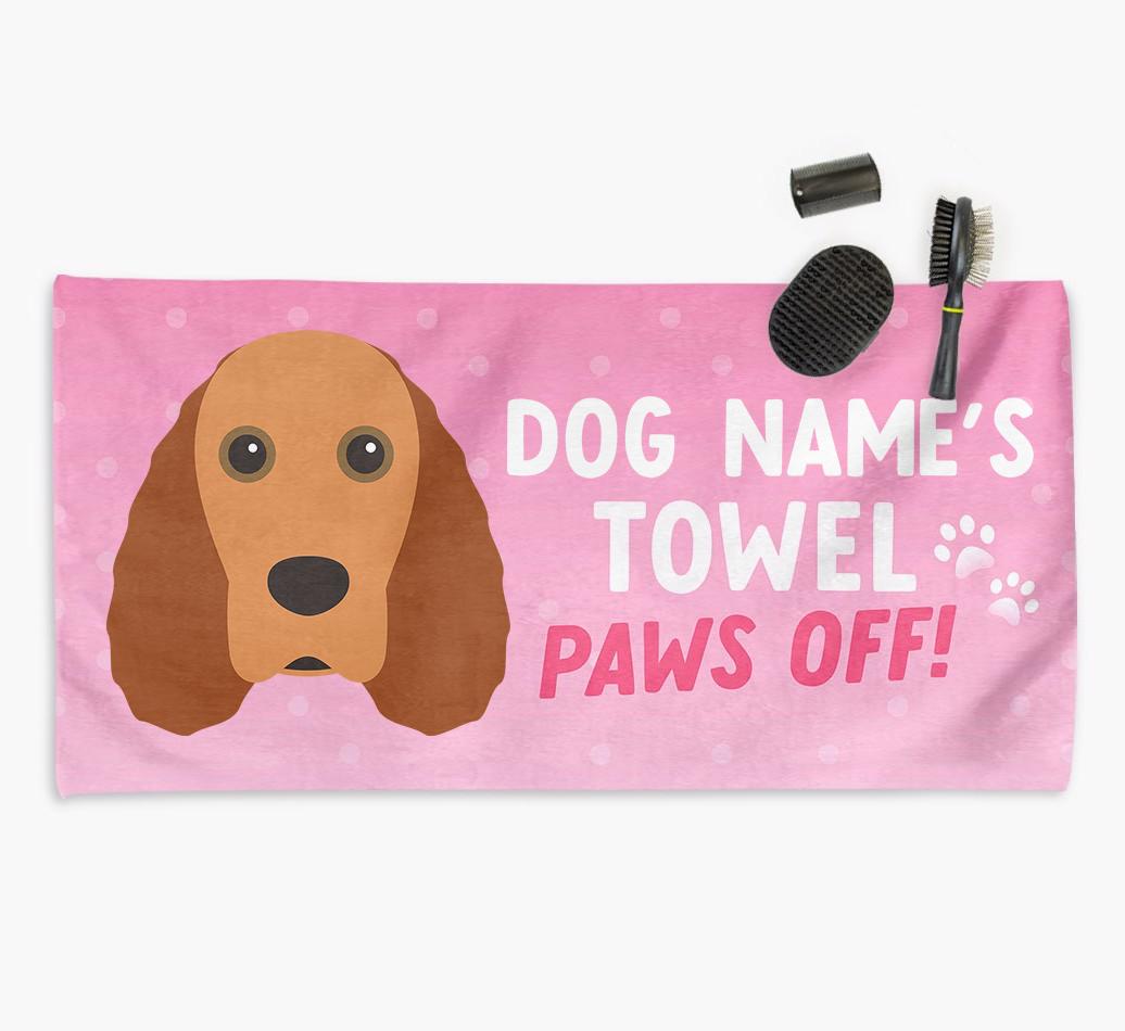 Perfect for messy pups and for pampering your Field Spaniel at bathtime, this soft and absorbent towel is made for cleaning your mucky pup and drying them off in a flash. It's personalized with Field Spaniel's name and icon and is printed with a message for everyone else to keep their paws off it!