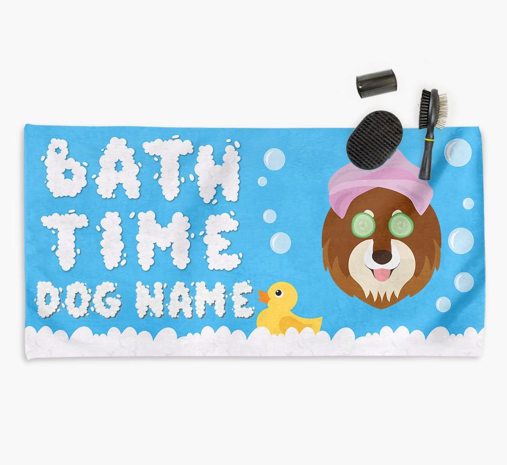 Bubble Bath Time: Personalized Finnish Lapphund Towel