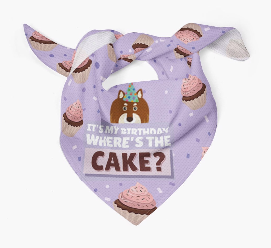 'Where's the Cake?' - Personalized Finnish Lapphund Birthday Bandana