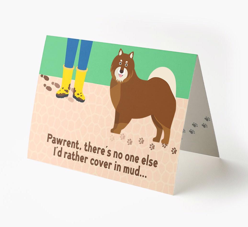 This comical card is sure to delight Finnish Lapphund's pawrent (without getting muddy), especially as it stars their Lappie's cheeky icon.