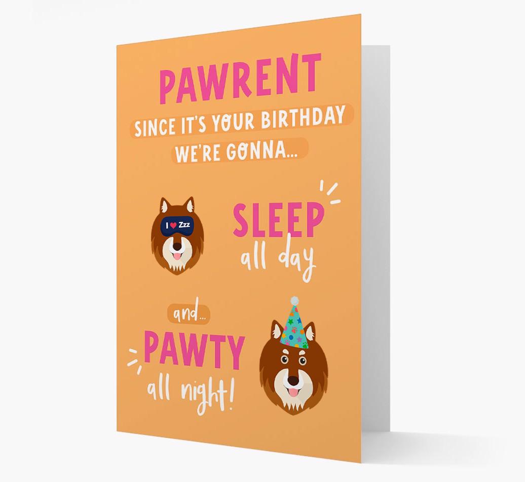 If Finnish Lapphund woofs to pawty all day and sleep all night, this card encourages their pawrent to do it with them on their birthday!
