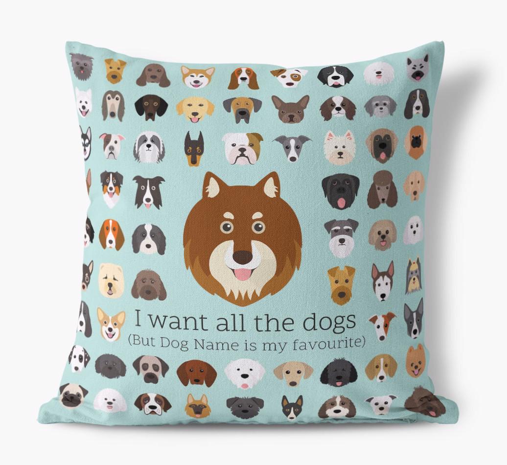 I Want All the Dogs: Personalized Finnish Lapphund Canvas Pillow