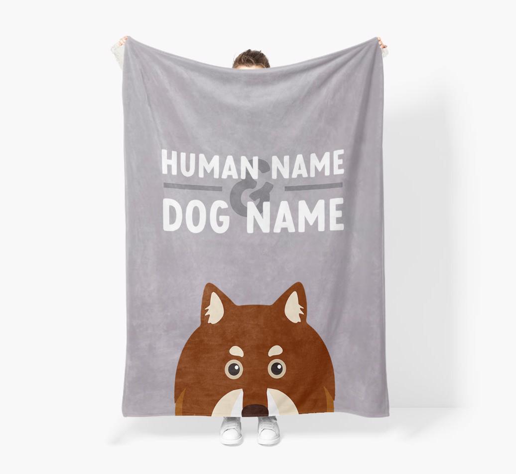 Human & Dog Name: Personalized Finnish Lapphund Premium Sherpa Fleece Blanket