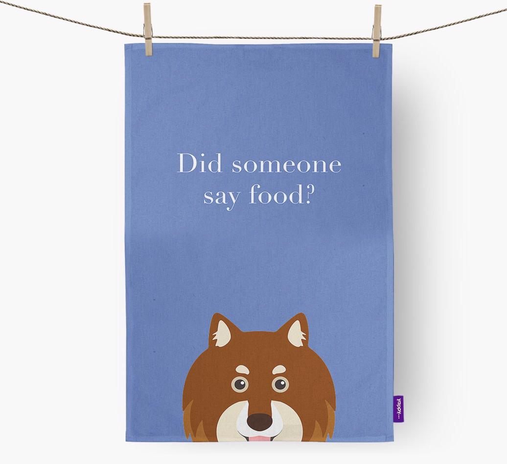 Printed with the question, ‘Did someone say food?’, this dish towel knows exactly what’s on Your Finnish Lapphund’s mind.