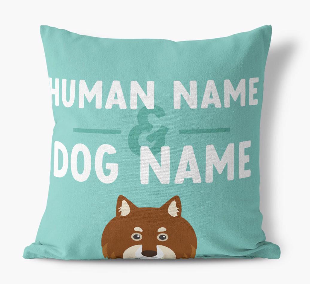 Human And Pet Name: Personalized Finnish Lapphund Canvas Pillow