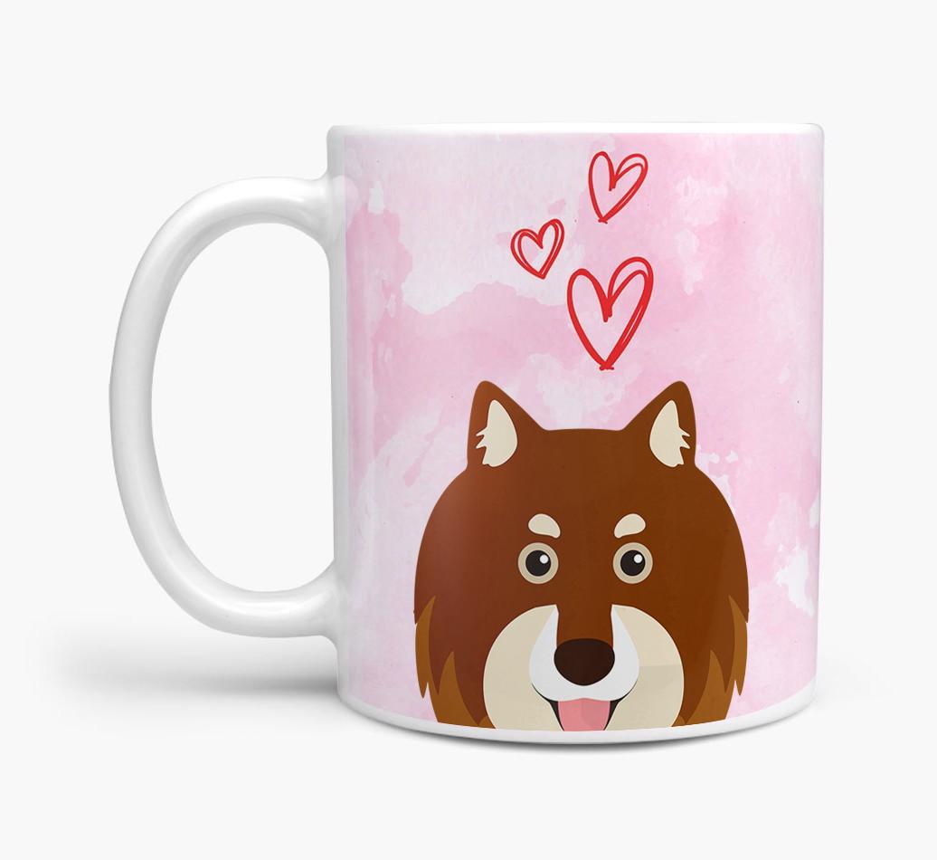 Peeking Dog & Hearts: Personalized Finnish Lapphund Mug