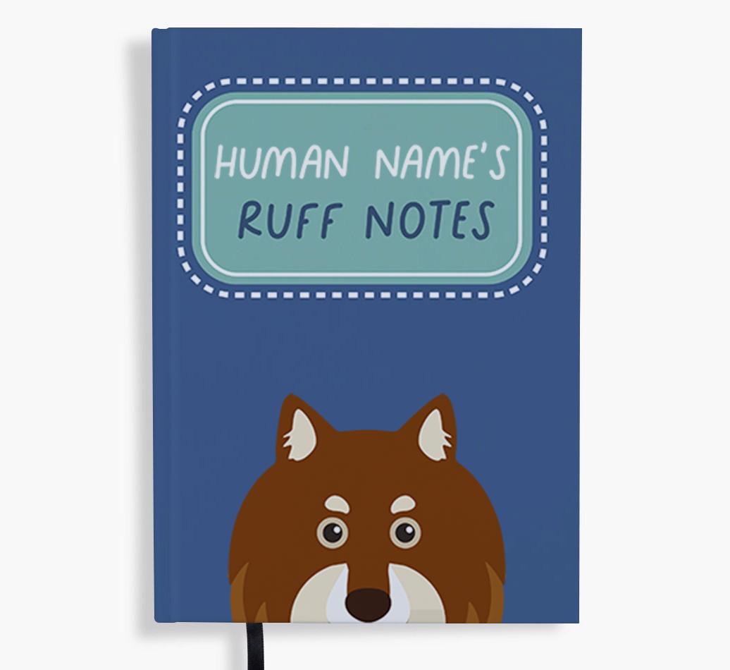 Starring Finnish Lapphund's cute icon and personalized with your name, this vibrant notebook may be a place for your ruff notes, but the cover will always look wagnificent!