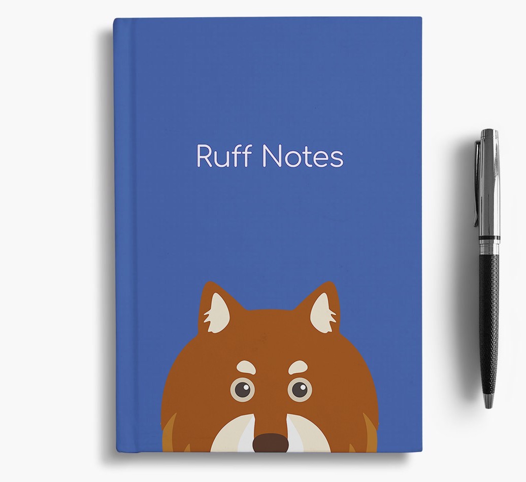 The front cover features our exclusive Finnish Lapphund peeking icon and is printed with the words, ‘Ruff Notes’, whilst the back is printed with the words ‘Live. Laugh. Woof.’.