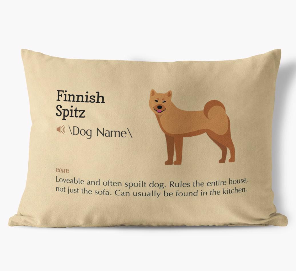 Personalized just for Your Finnish Spitz and featuring a unique Finnish Spitz definition and silhouette, this pillow truly is like no other.