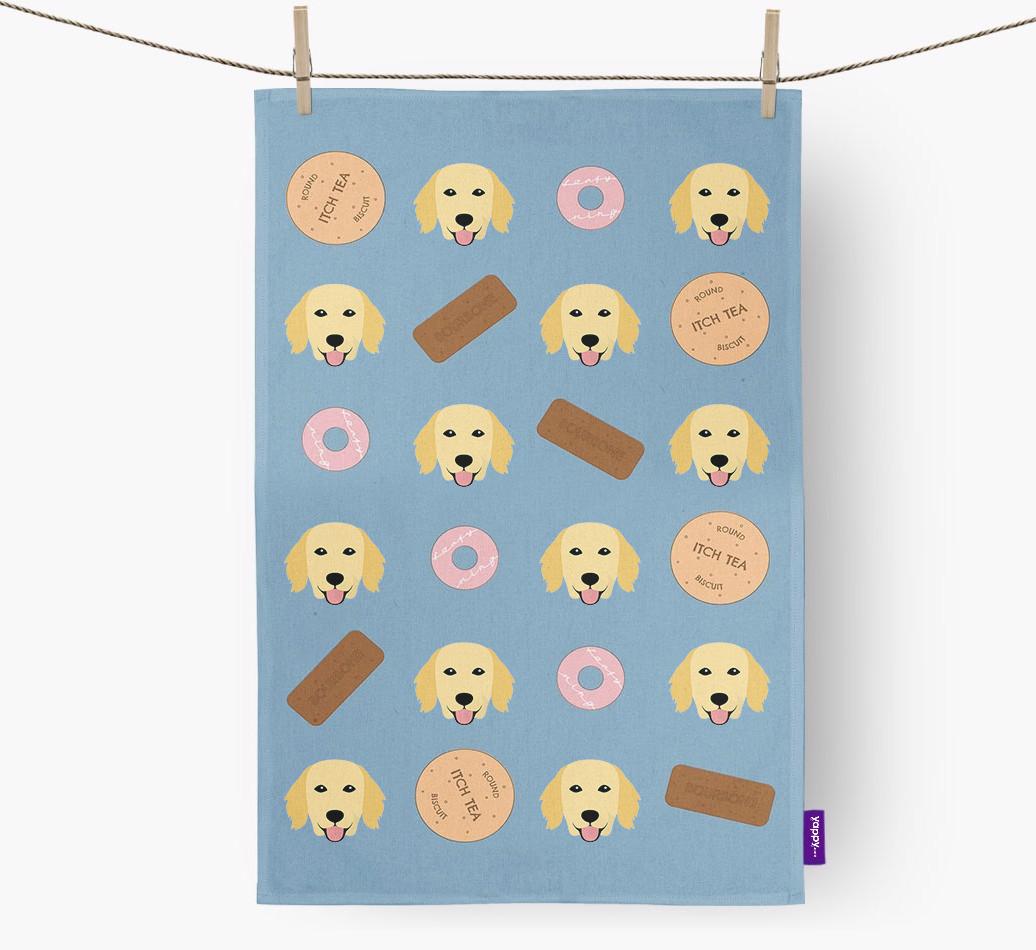 'Cookie Pattern' - Personalized Flat-Coated Retriever Dish Towel
