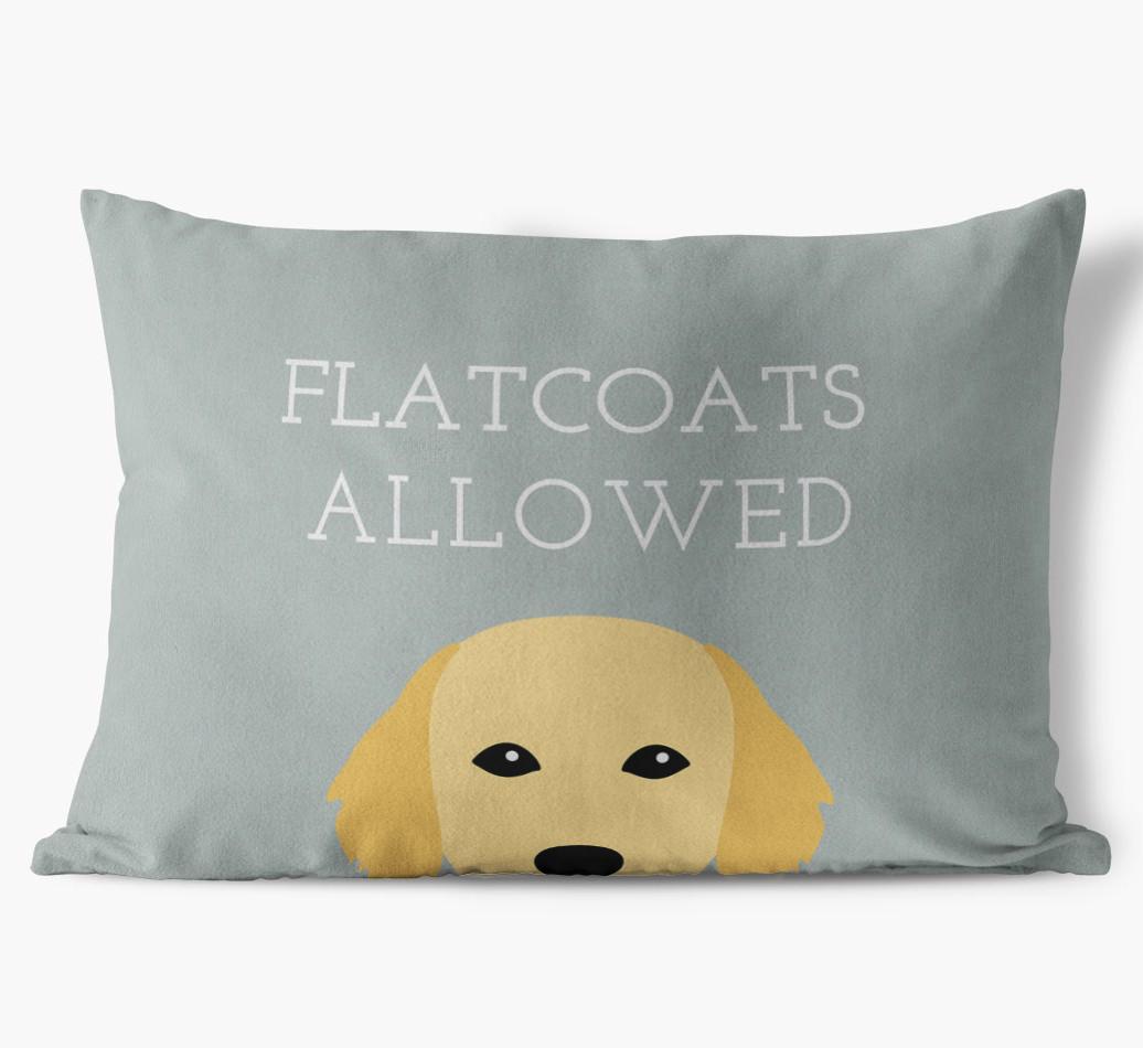 This exclusive, luxurious pillow is printed with the words ‘Flatcoats Allowed’, which I’m sure Your Flatcoat would definitely approve of.