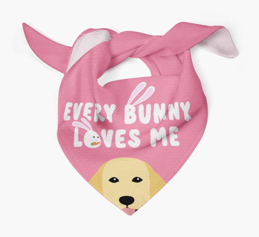 Tailored with the fabulous saying: 'Every Bunny Loves Me', this bandana is the perfect addition to your Flat-Coated Retriever's wardrobe! Available in four egg-ceptional colors and personalized with your Flat-Coated Retriever's icon, this is the perfect pawchase for Easter!