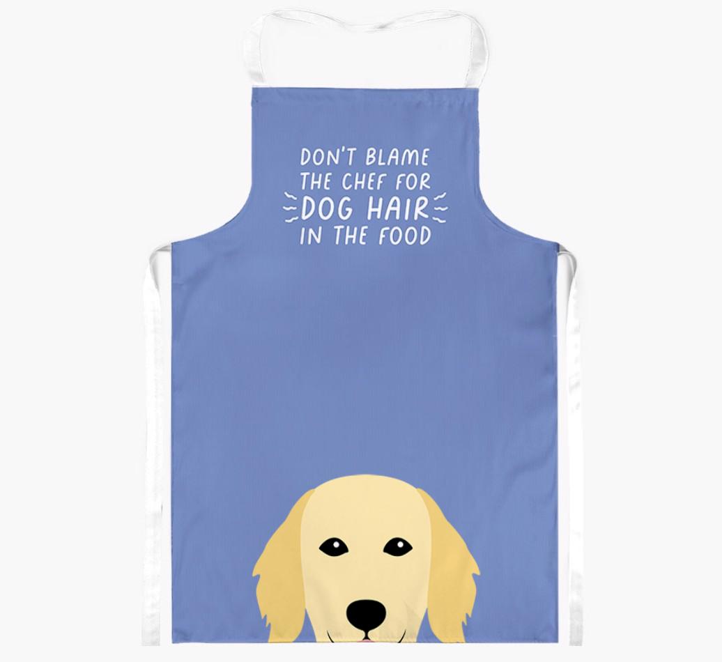 This funny apron will warn friends and family not to blame the chef for dog hairs in their food, they have Flat-Coated Retriever to thank for that!