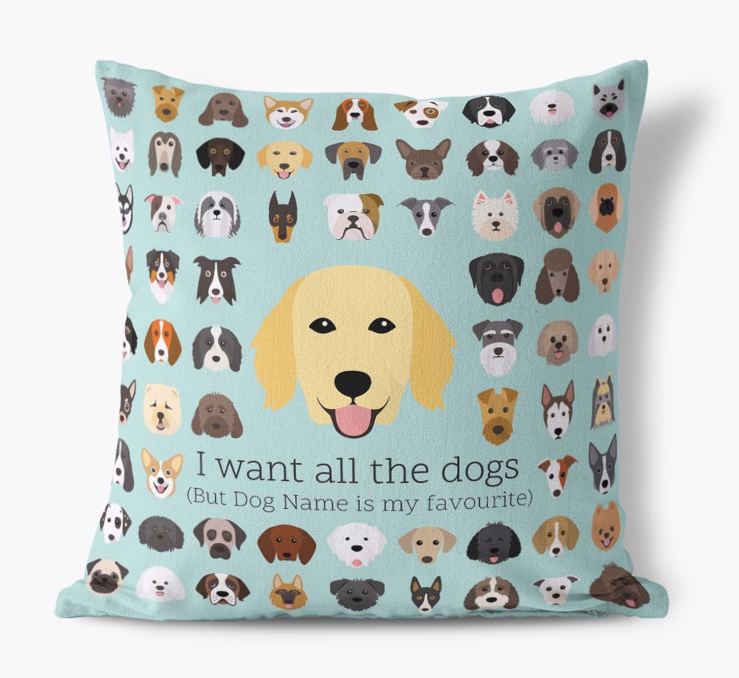 I Want All the Dogs: Personalized Flat-Coated Retriever Canvas Pillow