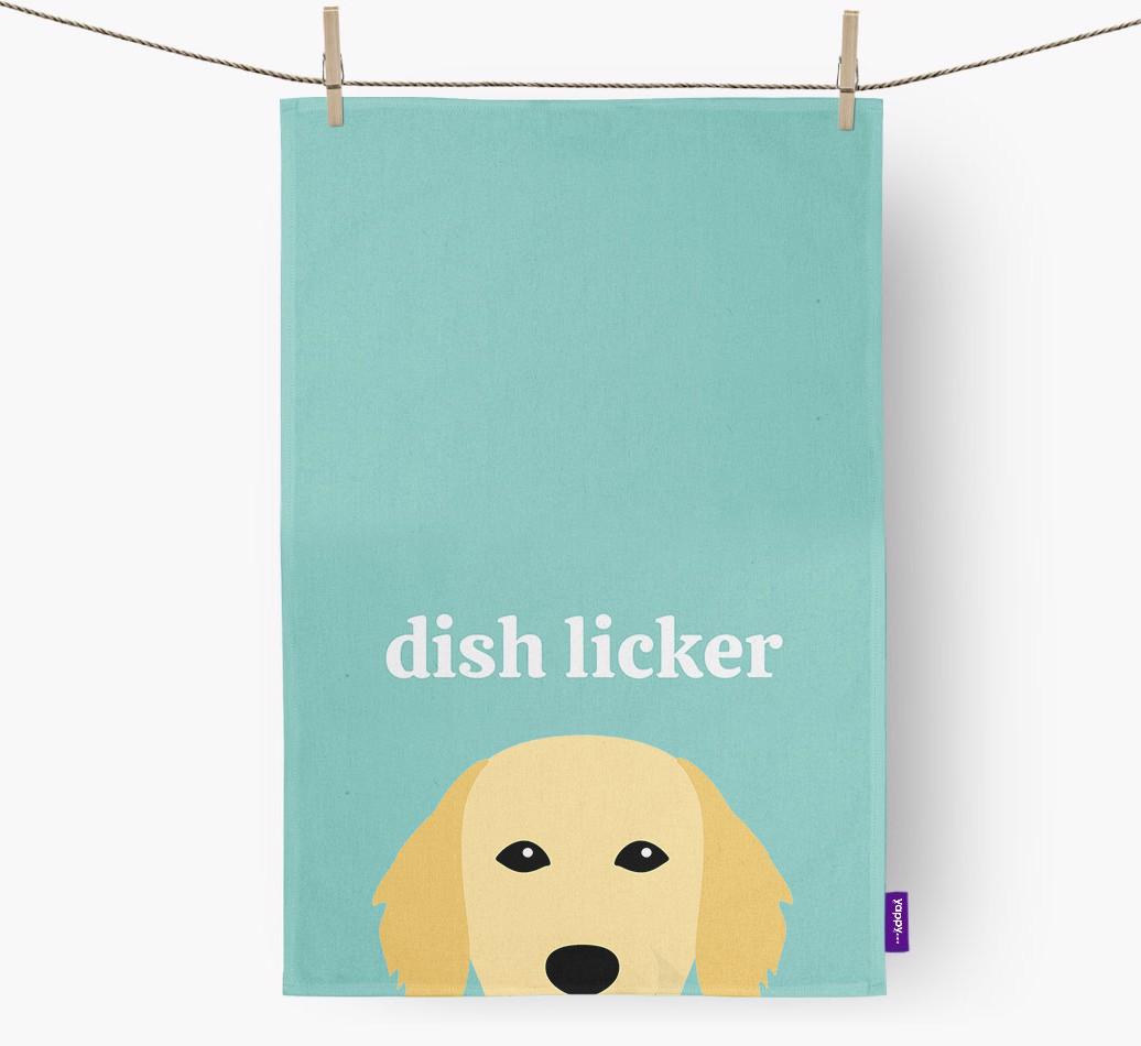 'Dish Licker' - Personalized Flat-Coated Retriever Dish Towel