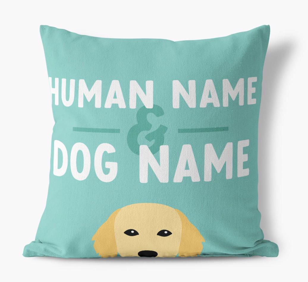 Human And Pet Name: Personalized Flat-Coated Retriever Canvas Pillow