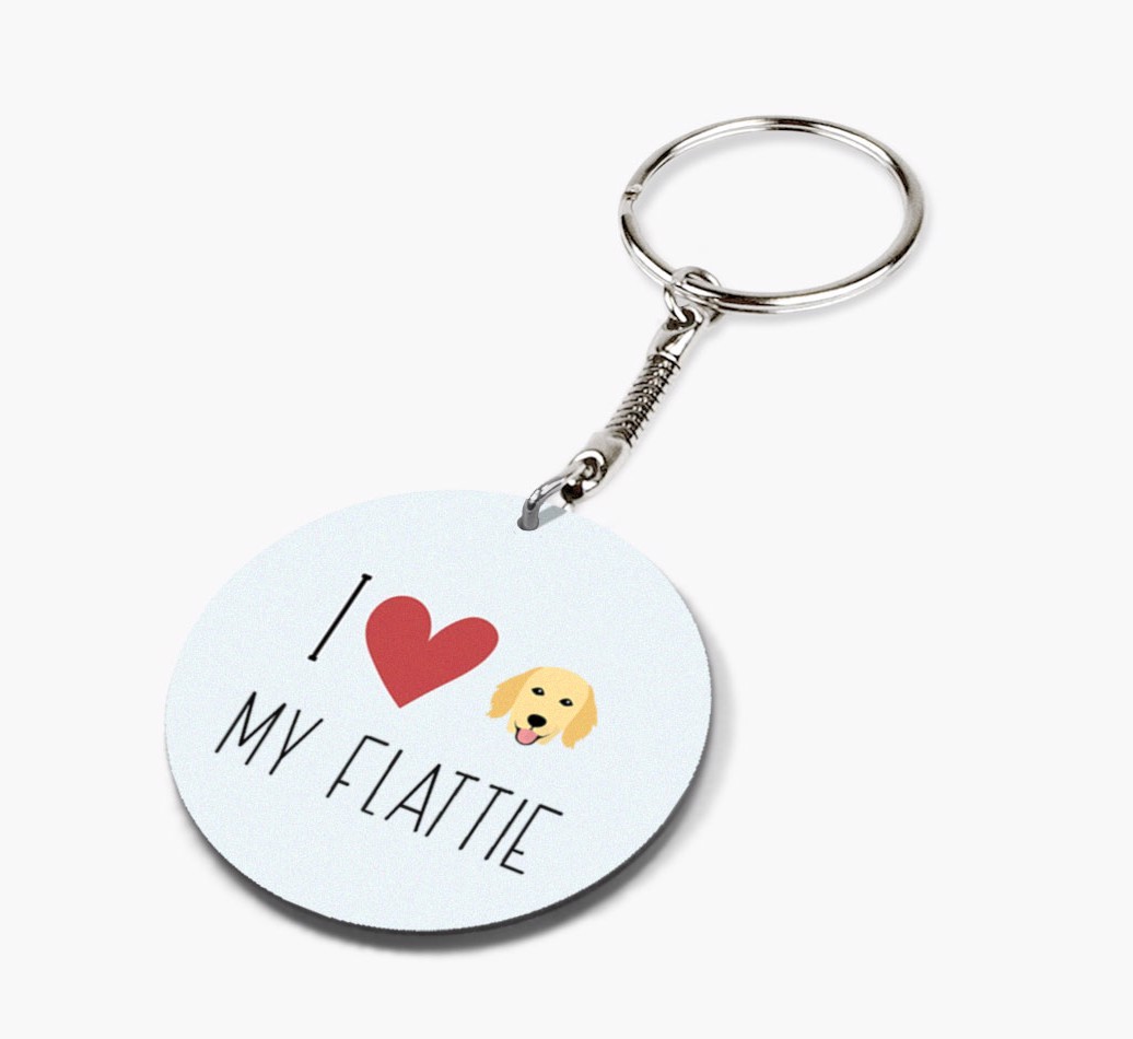 'I Heart My Flattie' - Personalized Double-sided keychain with Flat-Coated Retriever Icon