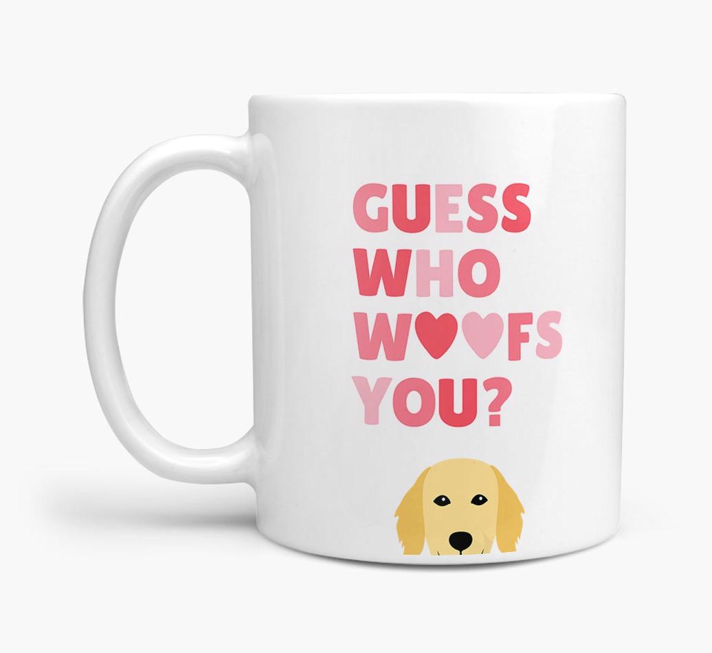 Personalized with Flat-Coated Retriever's cute face, this adorable mug is perfect for showing off the one who "woofs" you - how sweet!