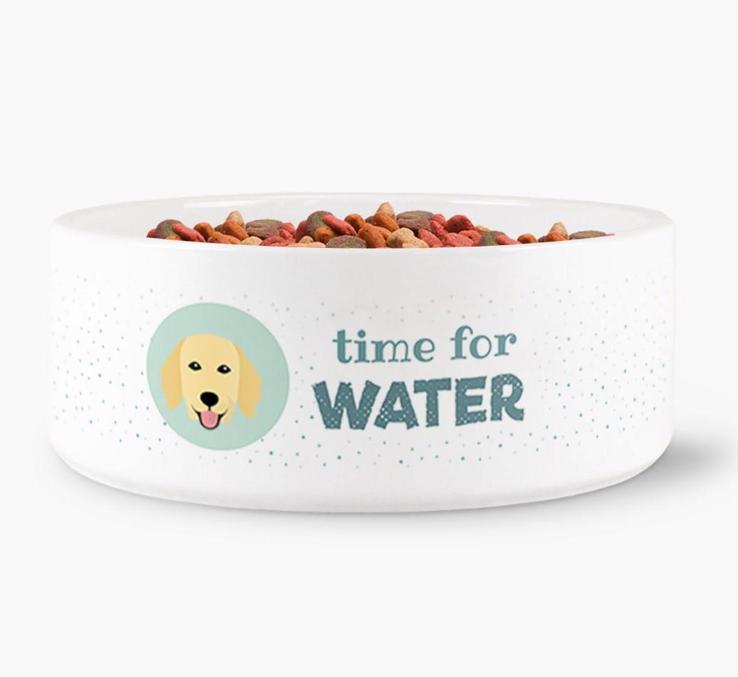 'Time for Water' - Personalized Water Bowl for your Flat-Coated Retriever