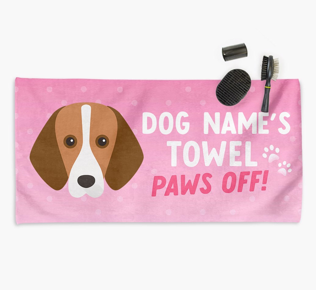 Perfect for messy pups and for pampering your Foxhound at bathtime, this soft and absorbent towel is made for cleaning your mucky pup and drying them off in a flash. It's personalized with Foxhound's name and icon and is printed with a message for everyone else to keep their paws off it!