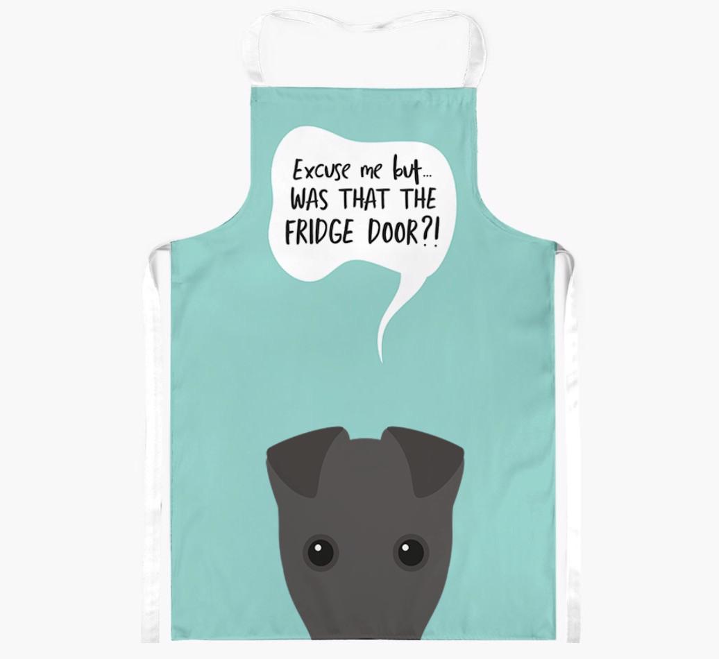Featuring your hungry hound's cheeky icon and available in five eye-catching colors, this apron is a must-have for parents of greedy pups!