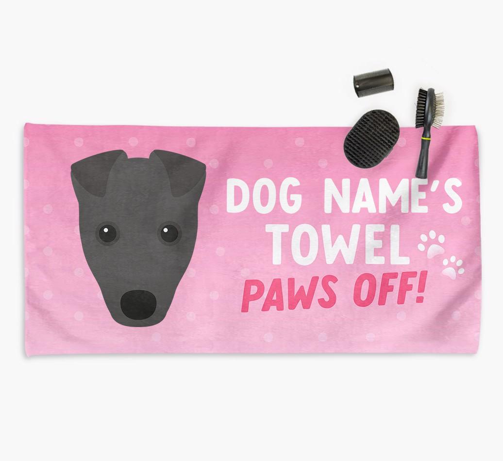 Perfect for messy pups and for pampering your Fox Terrier at bathtime, this soft and absorbent towel is made for cleaning your mucky pup and drying them off in a flash. It's personalized with Fox Terrier's name and icon and is printed with a message for everyone else to keep their paws off it!