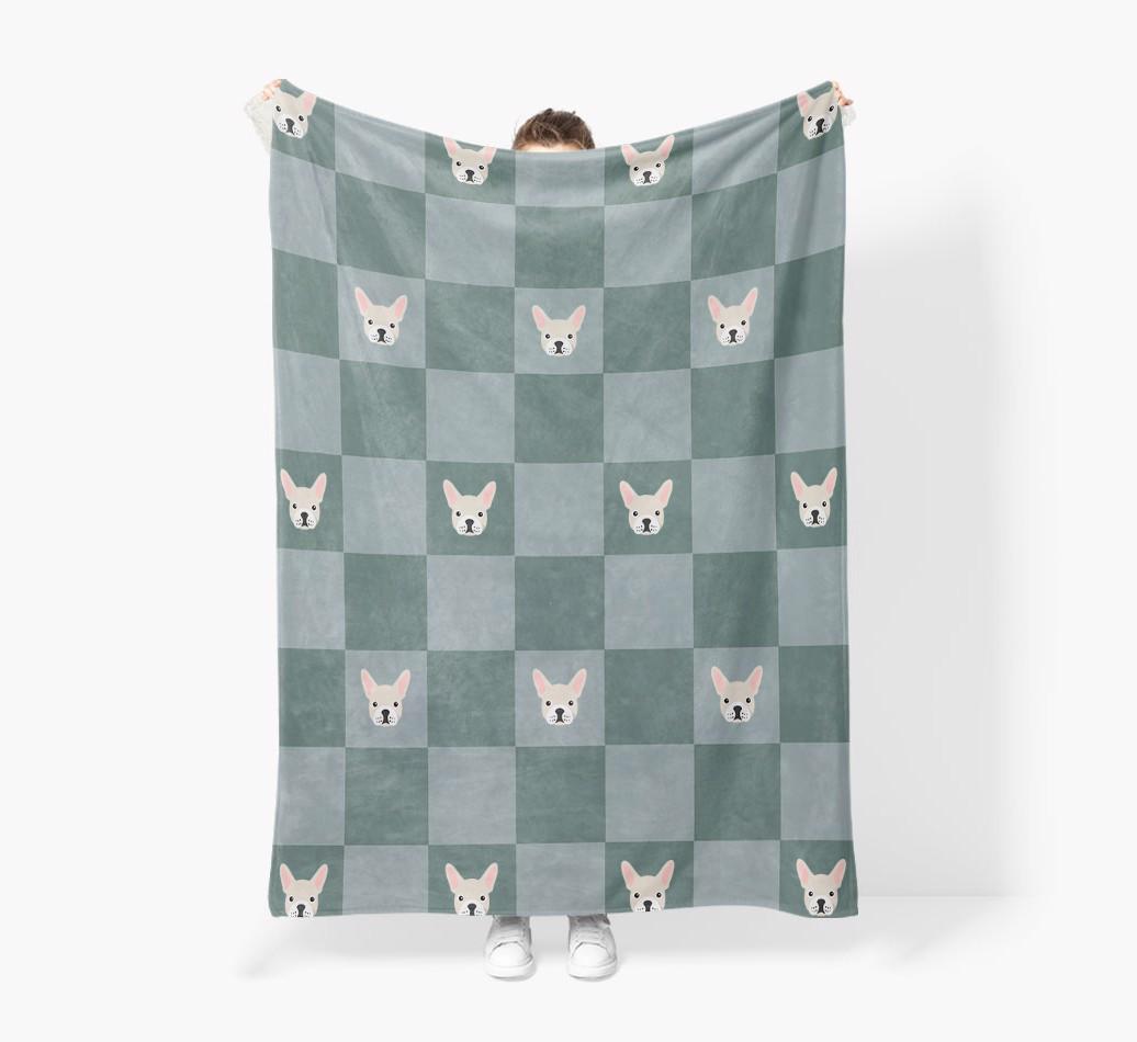 'Checkboard' - Personalized French Bulldog Blanket: Premium Sherpa Fleece