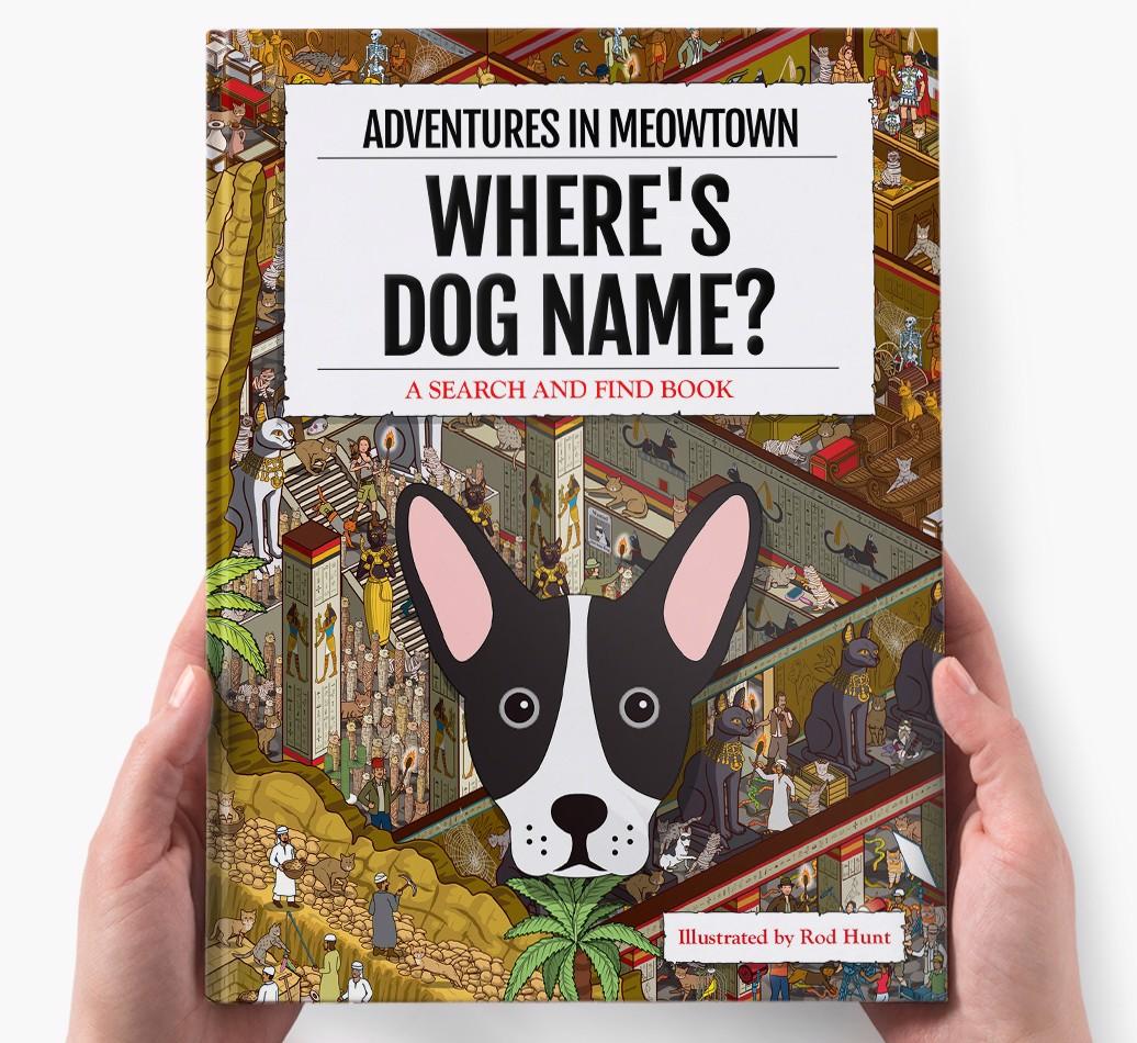 Get ready to unleash your inner detective with our popular Search & Find book, ‘Where’s (insert dog name)?’ It’s the personalized dog book everyone’s yapping about! With twelve beautifully illustrated locations to explore, we challenge you to find your adventurous {breedShortName} on each action-packed page. Can you spot all the canine cameos and funny parodies too?
