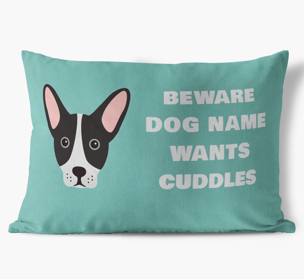 Beware of Cuddles: Personalized French Bull Jack Soft Touch Pillow
