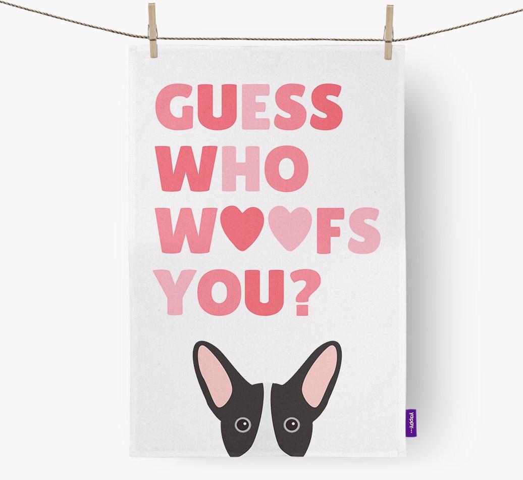 'Guess Who Woofs You?' - Personalized French Bull Jack Dish Towel