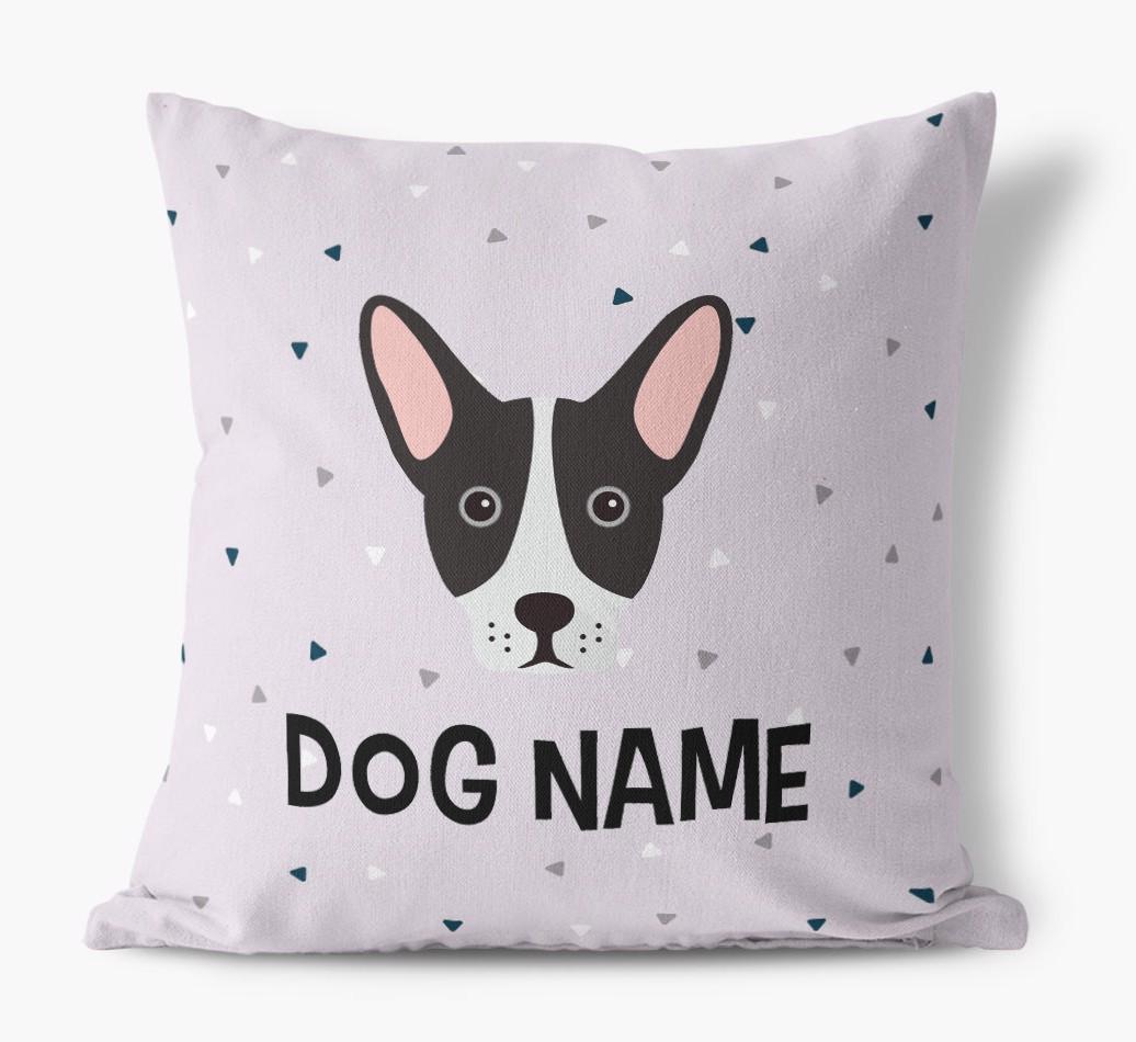 Triangle Pattern with French Bull Jack's Icon: Personalized Canvas Pillow