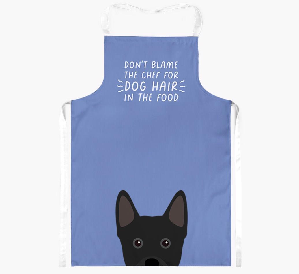This funny apron will warn friends and family not to blame the chef for dog hairs in their food, they have Frenchie Staff to thank for that!