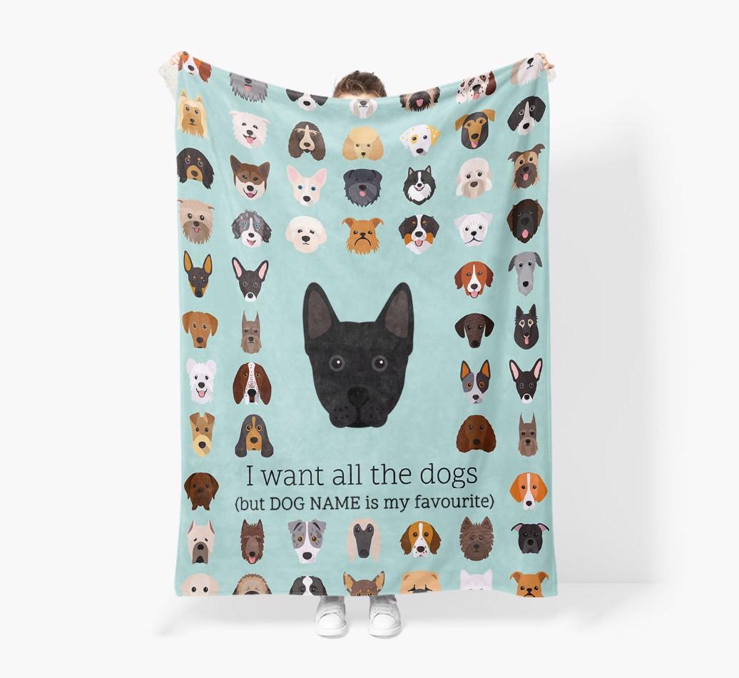 'All The Dogs' - Personalized Frenchie Staff Blanket: Premium Sherpa Fleece