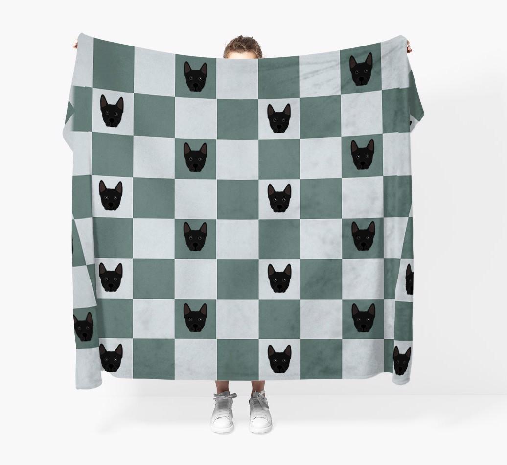 'Checkerboard' - Personalized Frenchie Staff Throw Blanket